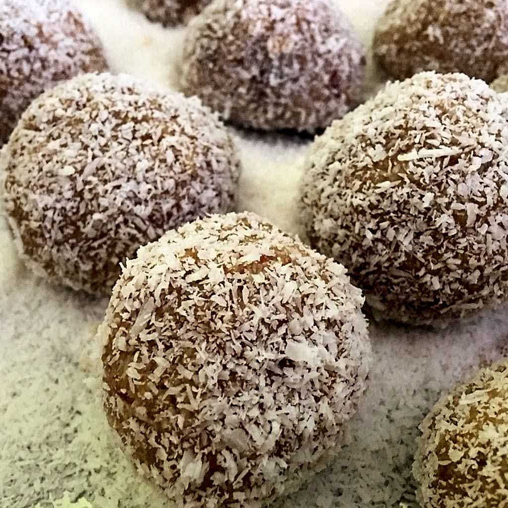 Kuru kayısı veya hurma, yulaf ezmesi, badem unu, Hindistan cevizi